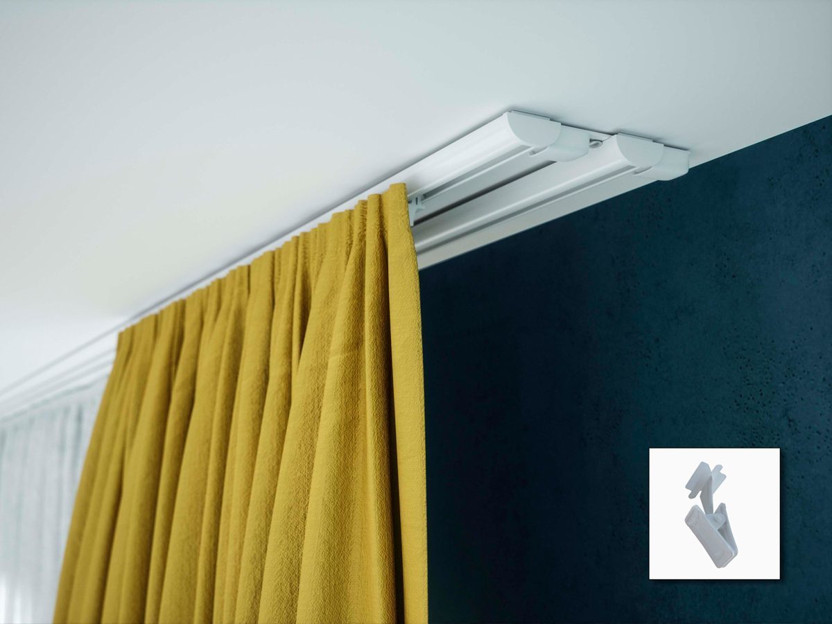 Profesjonalny i funkcjonalny system do zawieszania średnio-ciężkich tkanin. Montaż szyny na suficie jest szybki i prosty (wkręcane kołki mocujące w zestawie). Wytrzymałe wciskane suwaki – odporne na promieniowanie UV.  Szyny można łączyć ze sobą w dłuższe odcinki za pomocą łączników ZD . Do jednego połączenia dwóch zestawów podwójnych ZD2 niezbędne są dwa łączniki.