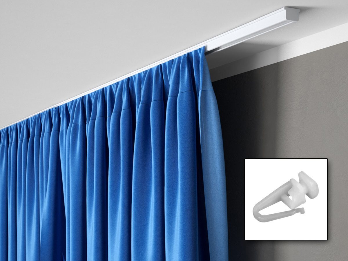 Zestaw karniszowy S250 z agrafkami obejmuje jedną szynę o długości 250 cm , wraz z kompletem niezbędnych akcesoriów do instalacji. Aluminiowe profile pokryte proszkową warstwą białego koloru stanowią minimalistyczny i elegancki dodatek. Jeśli twój projekt wymaga ukrycia karnisza, możesz skorzystać z dostępnej w różnych wzorach listwy karniszowej Mardom Decor.