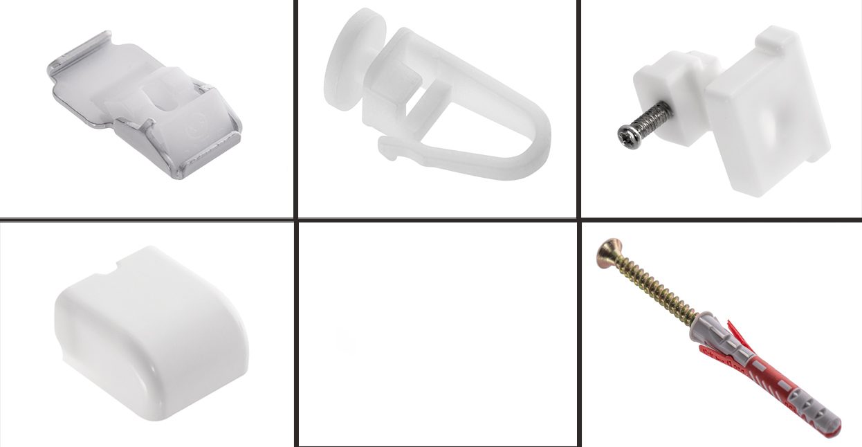 • 2 sztuki zaślepek do szyny, którymi zakryjesz odkryte boki aluminiowego profilu