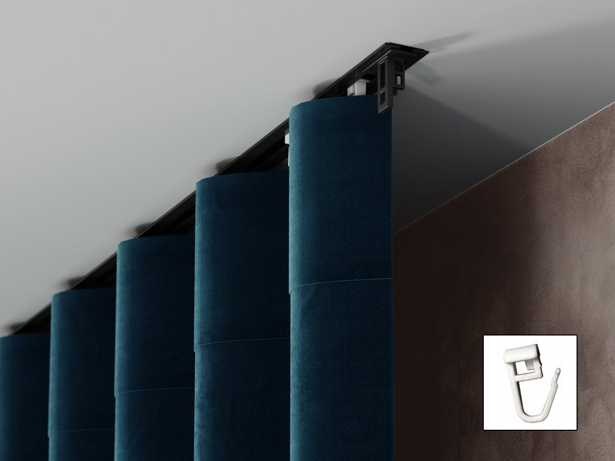 Profesjonalny i funkcjonalny system do zawieszania średnio-ciężkich tkanin. System aluminiowy PS – podtynkowy przeznaczony jest do pełnej zabudowy w suficie. Szynę montuje się bezpośrednio we wnęce przygotowanej w suficie lub w zabudowach z płyt gipsowo – kartonowych. Profil instalujemy do przygotowanego wcześniej kanału o odpowiedniej szerokości za pośrednictwem otworów montażowych rozmieszczonych wodstępach co 30 cm , przez które wkręcana jest śruba montażowa. Zalecane wkręty o maksymalnej średnicy główki do 6 mm i maksymalnej wysokości główki śruby 2,5 mm. Wytrzymałe wciskane suwaki – odporne na promieniowanie UV. Szyny można łączyć ze sobą w dłuższe odcinki za pomocą łączników ZS.